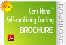 Award winning, Gens Nano™ photocatalyst coatings are sold with installation service or as a "do-it-yourself" system. Air and surface bio-contamination caused by Listeria, Salmonella, E.coli, Swine Flu (H1N1), Bird Flu (H5N1), SARS, mould spores can be eliminated utilizing award winning GENS NANO™ green technology.